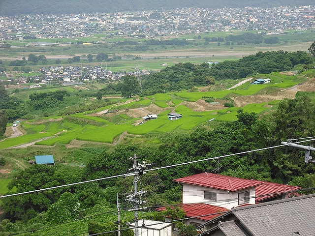 姨捨(おばすて)駅の下には棚田があります。ちなみに、田毎の月(たごとのつき)で有名です。夜景はきれいだろうなあ・・・