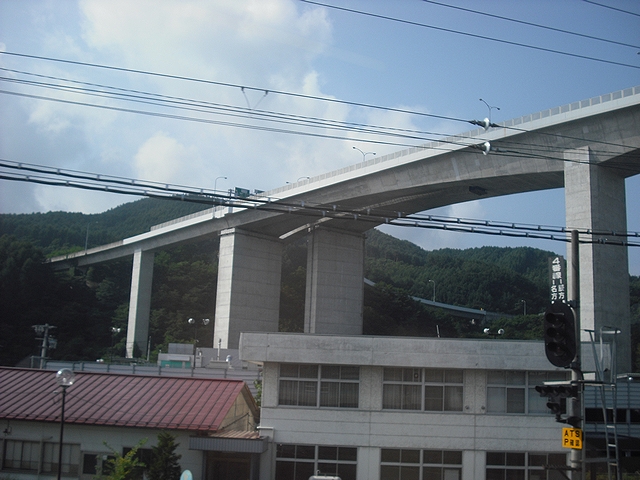 岡谷駅近くの写真。高速道路なんですが、高い・・・。地震の時怖いですね。