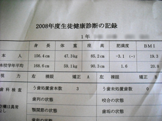 4月に測定した結果が返ってきた。たぶん今は身長は2センチほど伸びていると思う。