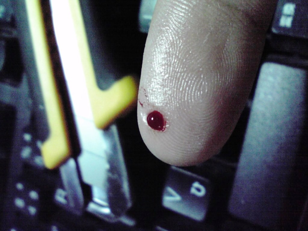 ところでこの前、カッターナイフを買いました。切れ味を試してみようかなと思い手に取ったら刃が出てて(忘れてた)、切りました。